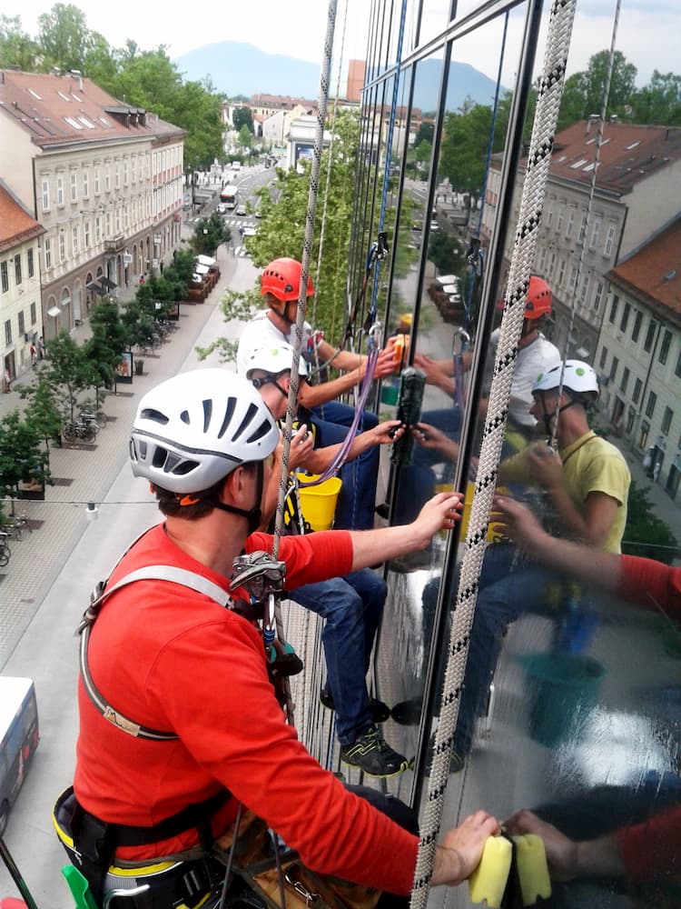 - Hostel Celica, Metelkova ulica 8, 1000 Ljubljana (čiščenje steklenih kupol na strehi hostla).
